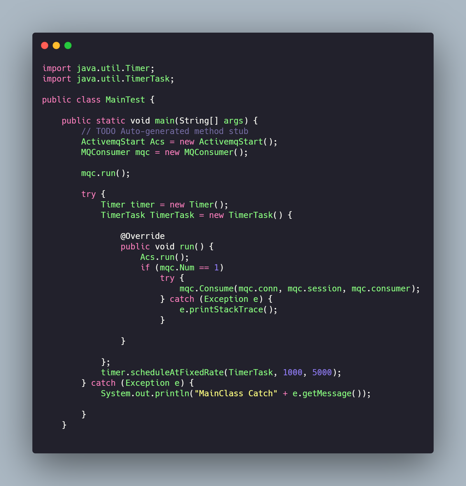 Activemq 테스트를 위해 간단한 Activemq 메시지 생성자 생성 코드 텍스트 형식으로 메시지를 생성하여 정해진 topic 경로에 보내는 소스 (topic 경로는 자신이 만들기) count 변수는 메시지 보낼 때마다 �